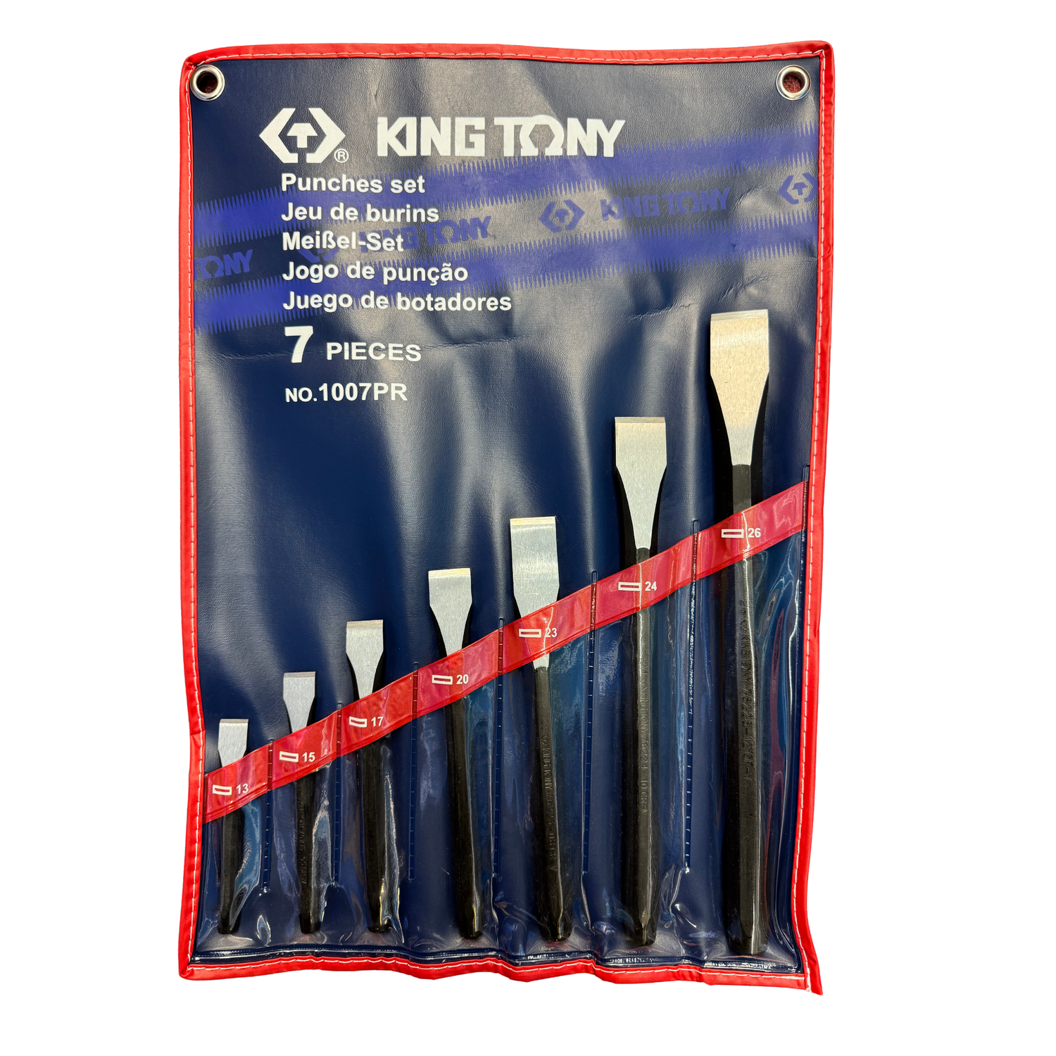 Expertly designed and crafted for precision work, the King Tony Cold Chisel Set is a must-have for any toolkit. With 7 different sizes included, this set allows for a wide range of applications, making it ideal for mechanics, craftsmen, and DIY enthusiasts. Made with high-quality materials, these punches are built to last and provide accurate results.
