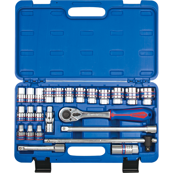 - 1/2" Drive Sockets: 8, 9, 10, 11, 12, 13, 14, 15, 16, 17, 18, 19, 21 22, 24, 27, 30, 32mm