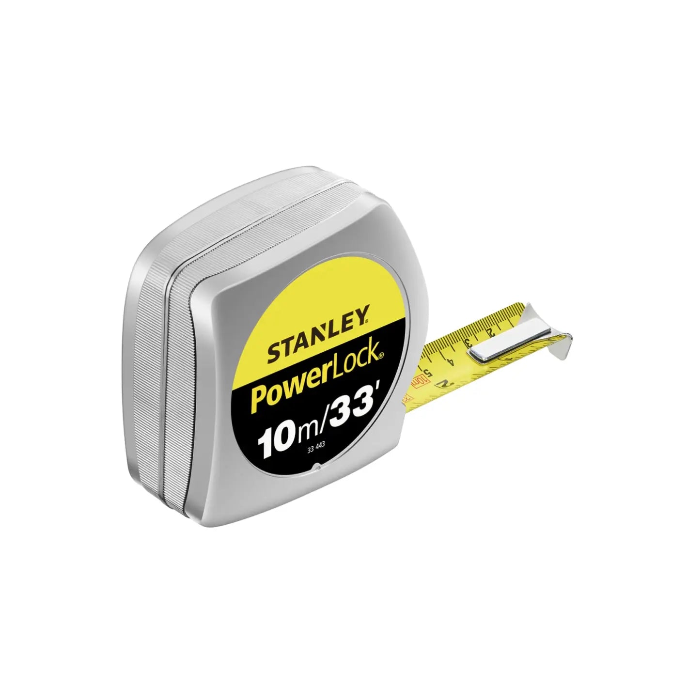The Stanley Powerlock Measure Tap is available in either 8M or 10M length. The Powerlock tape measure is a durable and reliable tool for accurate measurements on any job site. With its durable casing, precise measurements, and comfortable grip, it is the perfect addition to any toolbox.
