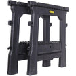 The STANLEY® Folding Sawhorse (Pair) provides a quick and convenient makeshift workbench for cutting materials, or a convenient flat surface to work from, with sturdy metal legs for loads up to 450kg. This light weight but strong and stable sawhorse can be folded in seconds for convenient storage and transportation to and from the jobsite.