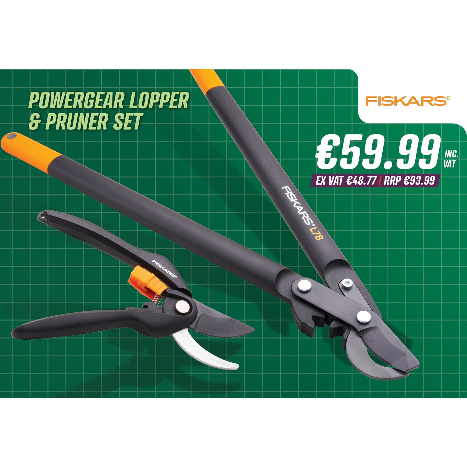 This New & Exclusive XMS Powergear™ Bypass Lopper & Pruner Set, 2 Piece, two individual best sellers from Fiskars combined for the perfect GKO for Christmas gardening set.