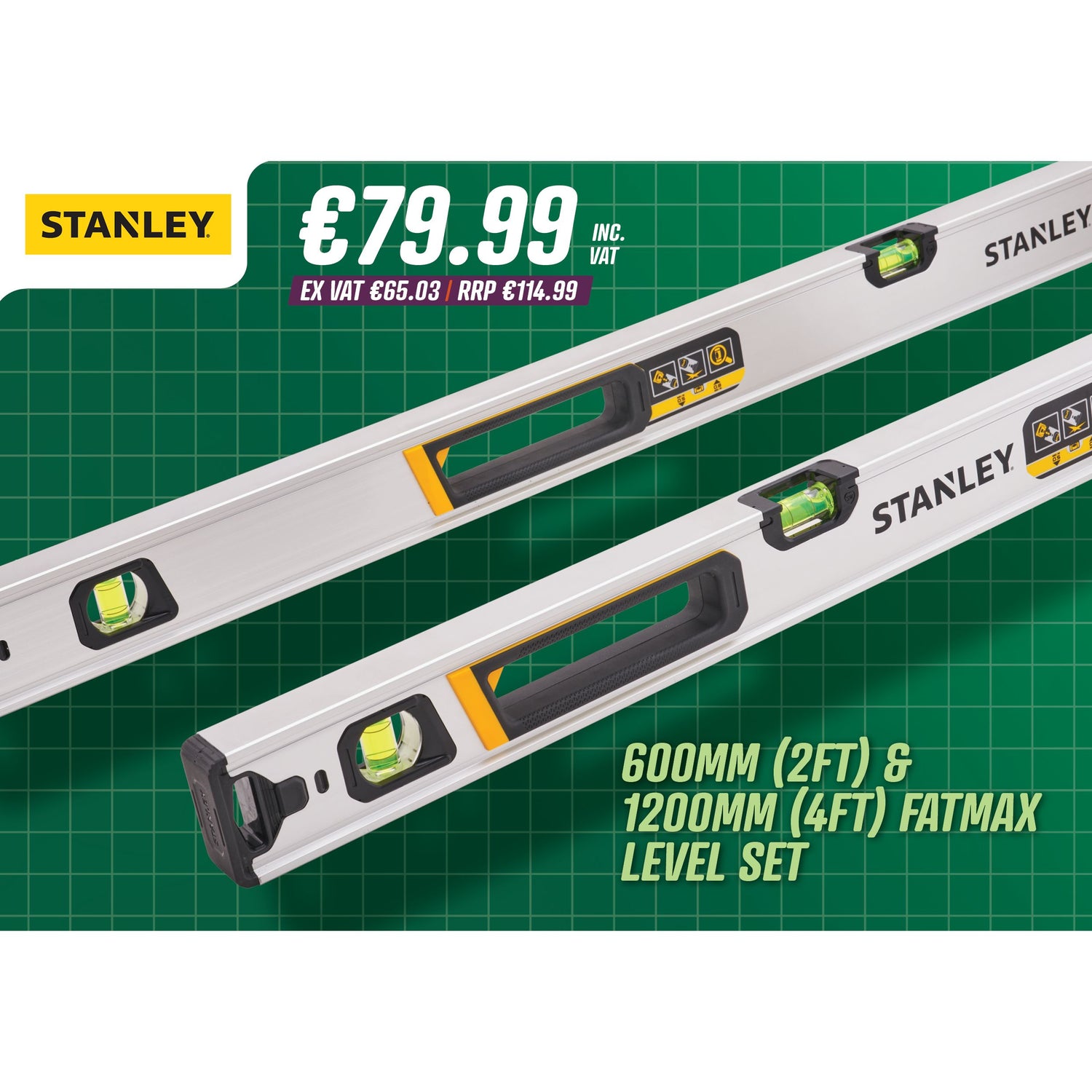 This New & Exclusive XMS Fatmax 2 Piece Level Set, 600mm (2ft) & 1200mm (4ft) from STANLEY, super accurate levels, do not miss this superb GKO offer.